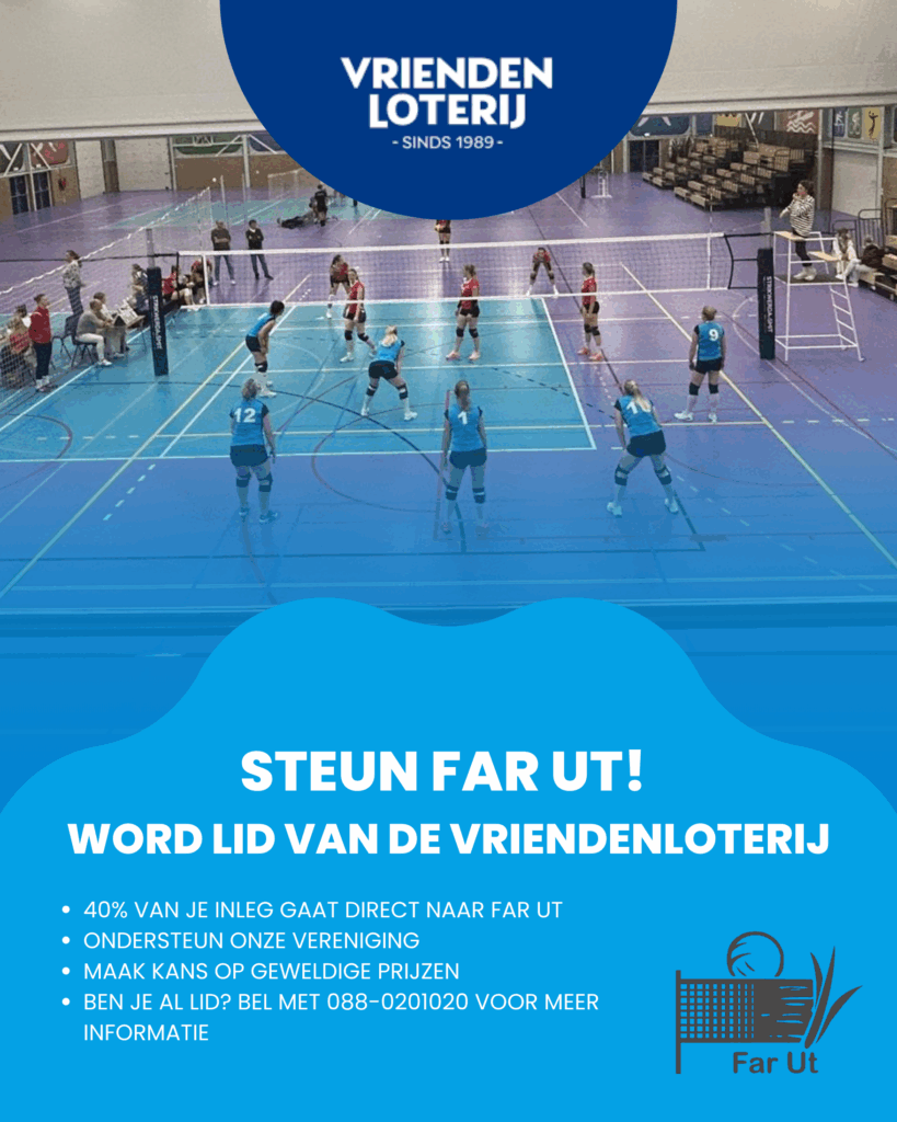 Volleybalvereniging Far Ut werkt sinds deze maand samen met de VriendenLoterij — en dat levert onze club geweldige extra inkomsten op! Dankzij deze steun kunnen we mooie stappen zetten binnen de hele vereniging.